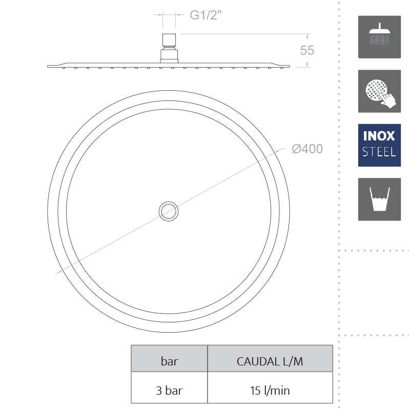 Ramonsoler Hidroterapia Лейка тропического душа из нержавеющей стали, цвет: хром RM400 и другие сантехнические изделия бренда характеризует надежность, высокое качество и продолжительный срок службы. Изделие в стилистике минимализм впечатляюще будет смотреться в различных цветовых решениях помещения.