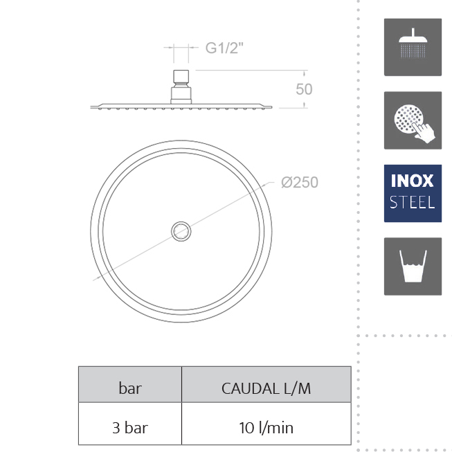 Ramonsoler Hidroterapia Лейка тропического душа из нержавеющей стали, цвет: никель брашированный RM250NC и другие сантехнические изделия бренда характеризует надежность, высокое качество и продолжительный срок службы. Изделие в стилистике лофт впечатляюще будет смотреться в различных цветовых решениях помещения.
