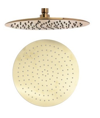 Ramonsoler Hidroterapia Лейка тропического душа из нержавеющей стали, цвет: золото брашированное RM250OC и другие сантехнические изделия бренда характеризует надежность, высокое качество и продолжительный срок службы. Изделие в стилистике лофт впечатляюще будет смотреться в различных цветовых решениях помещения.