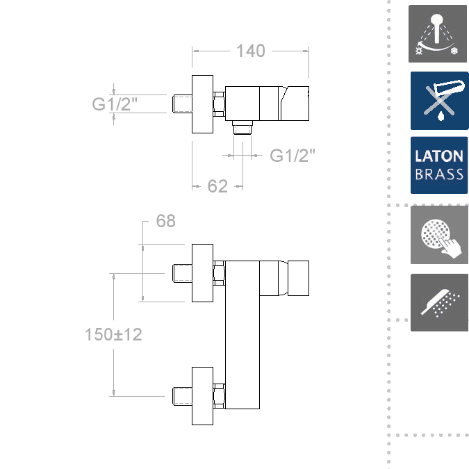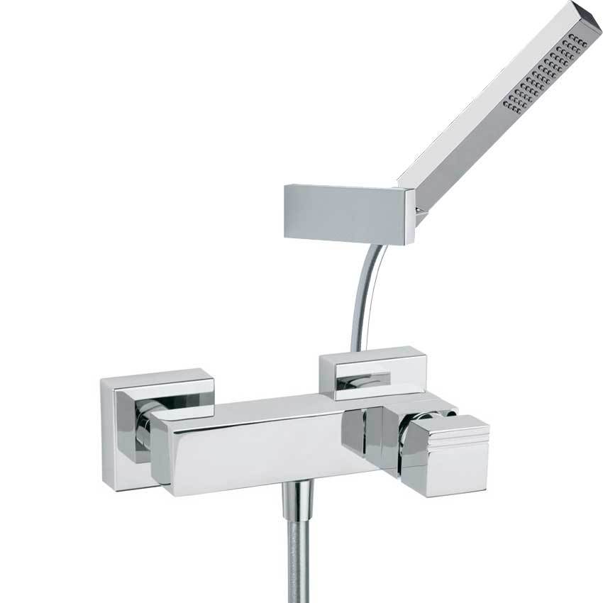 Ramonsoler Kuatro Смеситель настенный с душем, цвет: хром 4728MK и другие сантехнические изделия бренда характеризует надежность, высокое качество и продолжительный срок службы. Изделие в стилистике минимализм впечатляюще будет смотреться в различных цветовых решениях помещения.