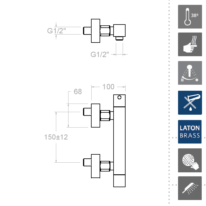 Ramonsoler Kuatro Термостатический смеситель настенный с душем, цвет: хром 4734MK и другие сантехнические изделия бренда характеризует надежность, высокое качество и продолжительный срок службы. Изделие в стилистике минимализм впечатляюще будет смотреться в различных цветовых решениях помещения.