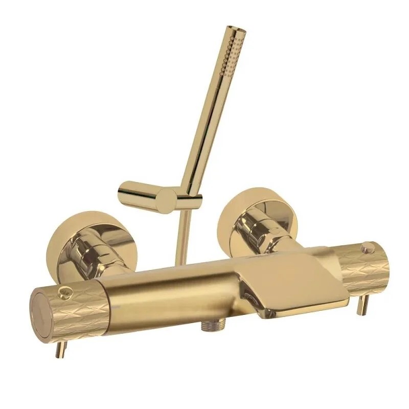 Ramonsoler Odisea Joya Термостатический смеситель настенный каскад, цвет: золото брашированное 593901DOC и другие сантехнические изделия бренда характеризует надежность, высокое качество и продолжительный срок службы. Изделие в стилистике минимализм впечатляюще будет смотреться в различных цветовых решениях помещения.