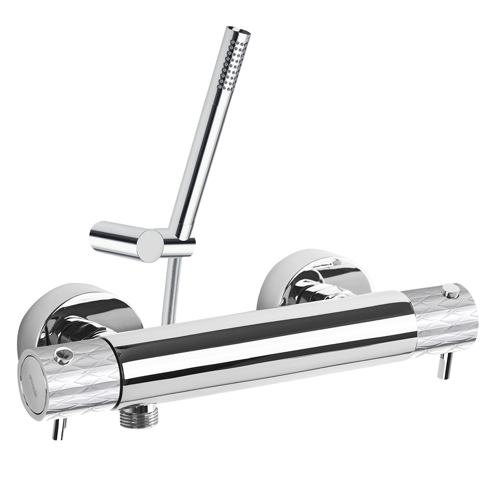 Ramonsoler Odisea Joya Термостатический смеситель настенный с душем, цвет: хром 593401MO и другие сантехнические изделия бренда характеризует надежность, высокое качество и продолжительный срок службы. Изделие в стилистике минимализм впечатляюще будет смотреться в различных цветовых решениях помещения.