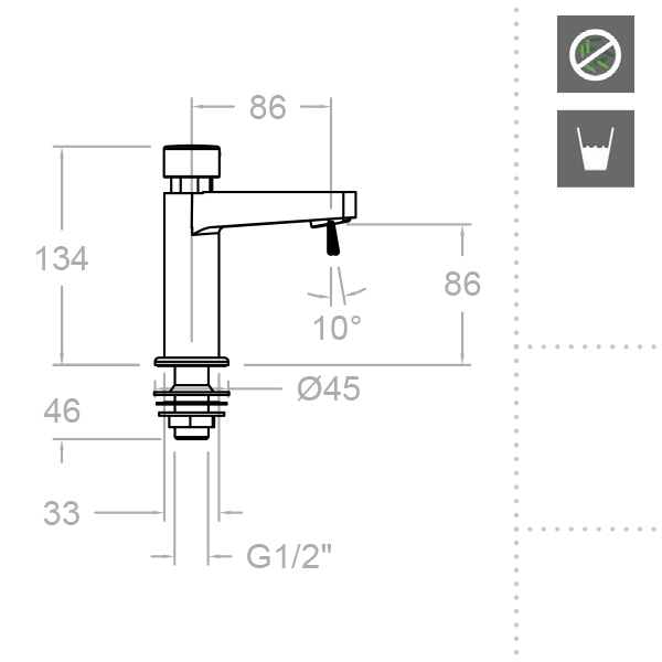Ramonsoler Solestop Кран нажимной порционный, цвет: хром 745103 и другие сантехнические изделия бренда характеризует надежность, высокое качество и продолжительный срок службы. Изделие в стилистике минимализм впечатляюще будет смотреться в различных цветовых решениях помещения.