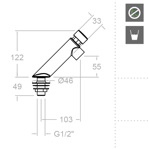Ramonsoler Solestop Кран нажимной порционный, цвет: хром 745803 и другие сантехнические изделия бренда характеризует надежность, высокое качество и продолжительный срок службы. Изделие в стилистике минимализм впечатляюще будет смотреться в различных цветовых решениях помещения.
