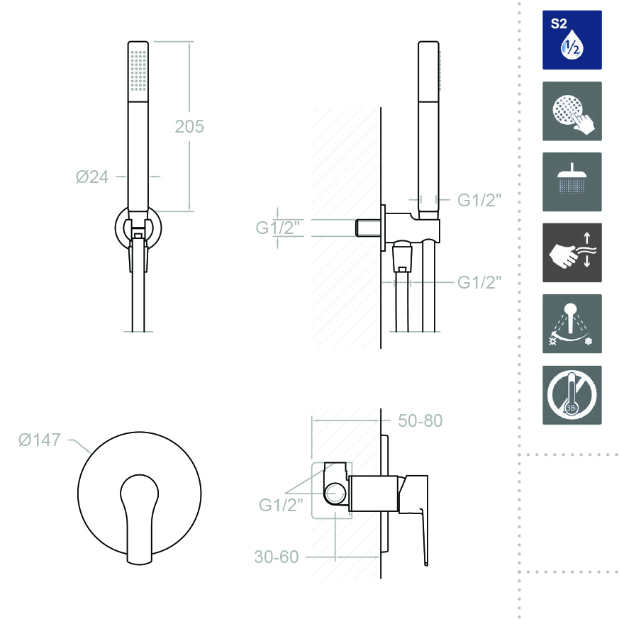 Ramonsoler Titanium Душевой комплект встраиваемый, цвет: хром K1818011 и другие сантехнические изделия бренда характеризует надежность, высокое качество и продолжительный срок службы. Изделие в стилистике минимализм впечатляюще будет смотреться в различных цветовых решениях помещения.