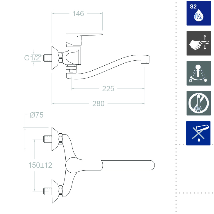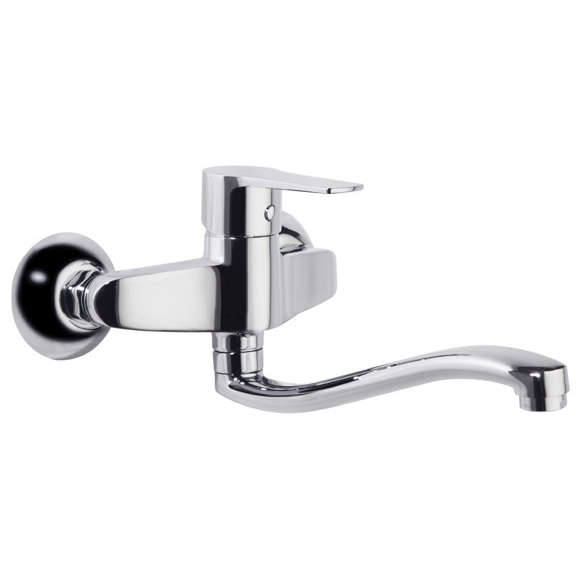 Ramonsoler Titanium Смеситель для кухни настенный однорычажный, цвет: хром 180701CC и другие сантехнические изделия бренда характеризует надежность, высокое качество и продолжительный срок службы. Изделие в стилистике минимализм впечатляюще будет смотреться в различных цветовых решениях помещения.