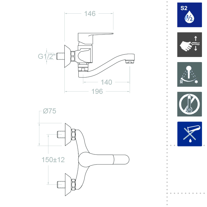 Ramonsoler Titanium Смеситель для кухни настенный однорычажный, цвет: хром 180701CCB14 и другие сантехнические изделия бренда характеризует надежность, высокое качество и продолжительный срок службы. Изделие в стилистике минимализм впечатляюще будет смотреться в различных цветовых решениях помещения.