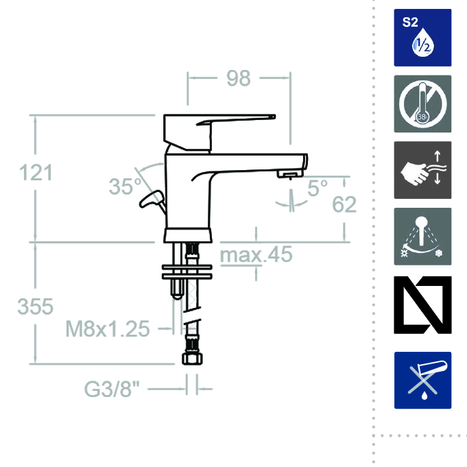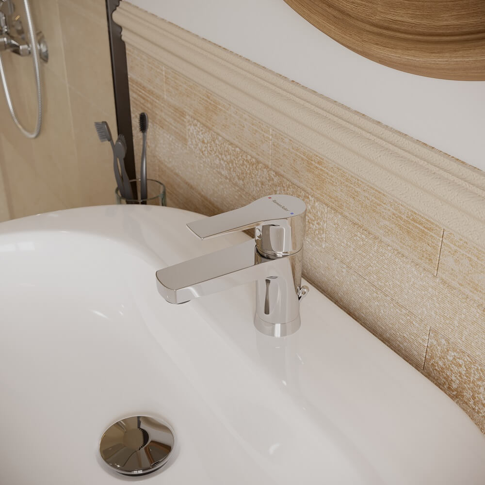 Ramonsoler Titanium Смеситель для раковины однорычажный, цвет: хром 1801 и другие сантехнические изделия бренда характеризует надежность, высокое качество и продолжительный срок службы. Изделие в стилистике минимализм впечатляюще будет смотреться в различных цветовых решениях помещения.