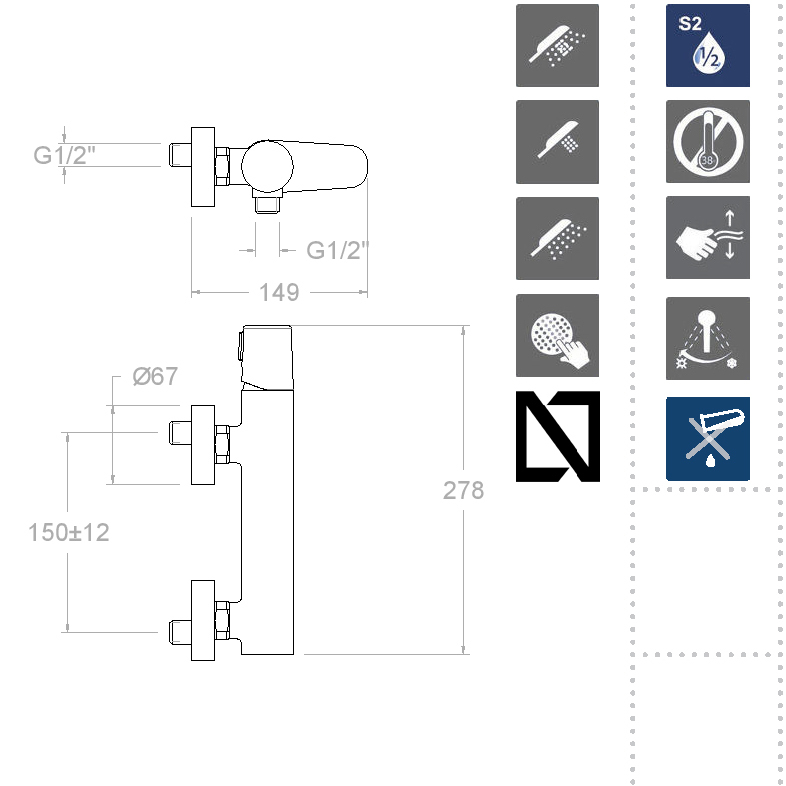 Ramonsoler Tzar Смеситель настенный с душем, цвет: хром 340801TR и другие сантехнические изделия бренда характеризует надежность, высокое качество и продолжительный срок службы. Изделие в стилистике минимализм впечатляюще будет смотреться в различных цветовых решениях помещения.