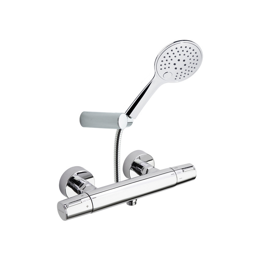 Ramonsoler Tzar Термостатический смеситель настенный с душем, цвет: хром 343401TR и другие сантехнические изделия бренда характеризует надежность, высокое качество и продолжительный срок службы. Изделие в стилистике минимализм впечатляюще будет смотреться в различных цветовых решениях помещения.