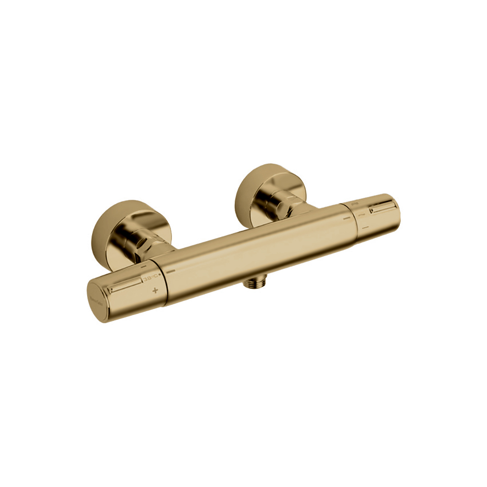 Ramonsoler Tzar Термостатический смеситель настенный, цвет: золото брашированное 343401SOC и другие сантехнические изделия бренда характеризует надежность, высокое качество и продолжительный срок службы. Изделие в стилистике минимализм впечатляюще будет смотреться в различных цветовых решениях помещения.