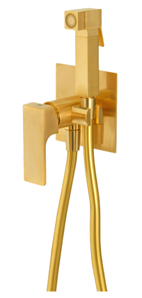 Remer Absolute Гигиенический душ со смесителем, шланг, с встраиваемой частью, цвет: oro spazzolato AU65BG и другие сантехнические изделия бренда характеризует надежность, высокое качество и продолжительный срок службы. Изделие в стилистике минимализм впечатляюще будет смотреться в различных цветовых решениях помещения.