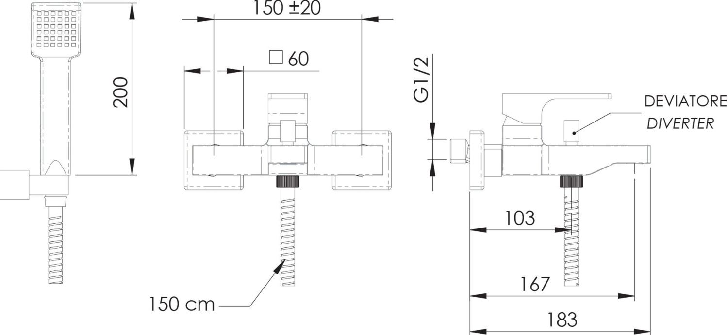 Remer Absolute Смеситель для ванны с душем, лейка, держатель, шланг 150 см, цвет: cromo AU02 и другие сантехнические изделия бренда характеризует надежность, высокое качество и продолжительный срок службы. Изделие в стилистике минимализм впечатляюще будет смотреться в различных цветовых решениях помещения.