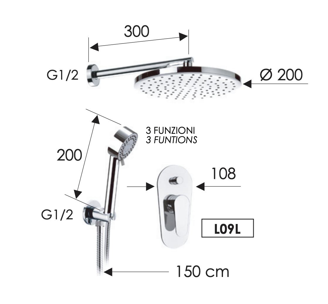 Remer Class Line Душевой комплект: смеситель, верхний душ 20 см, лейка 3 режима, шланг, цвет: cromo L09S02 и другие сантехнические изделия бренда характеризует надежность, высокое качество и продолжительный срок службы. Изделие в стилистике минимализм впечатляюще будет смотреться в различных цветовых решениях помещения.