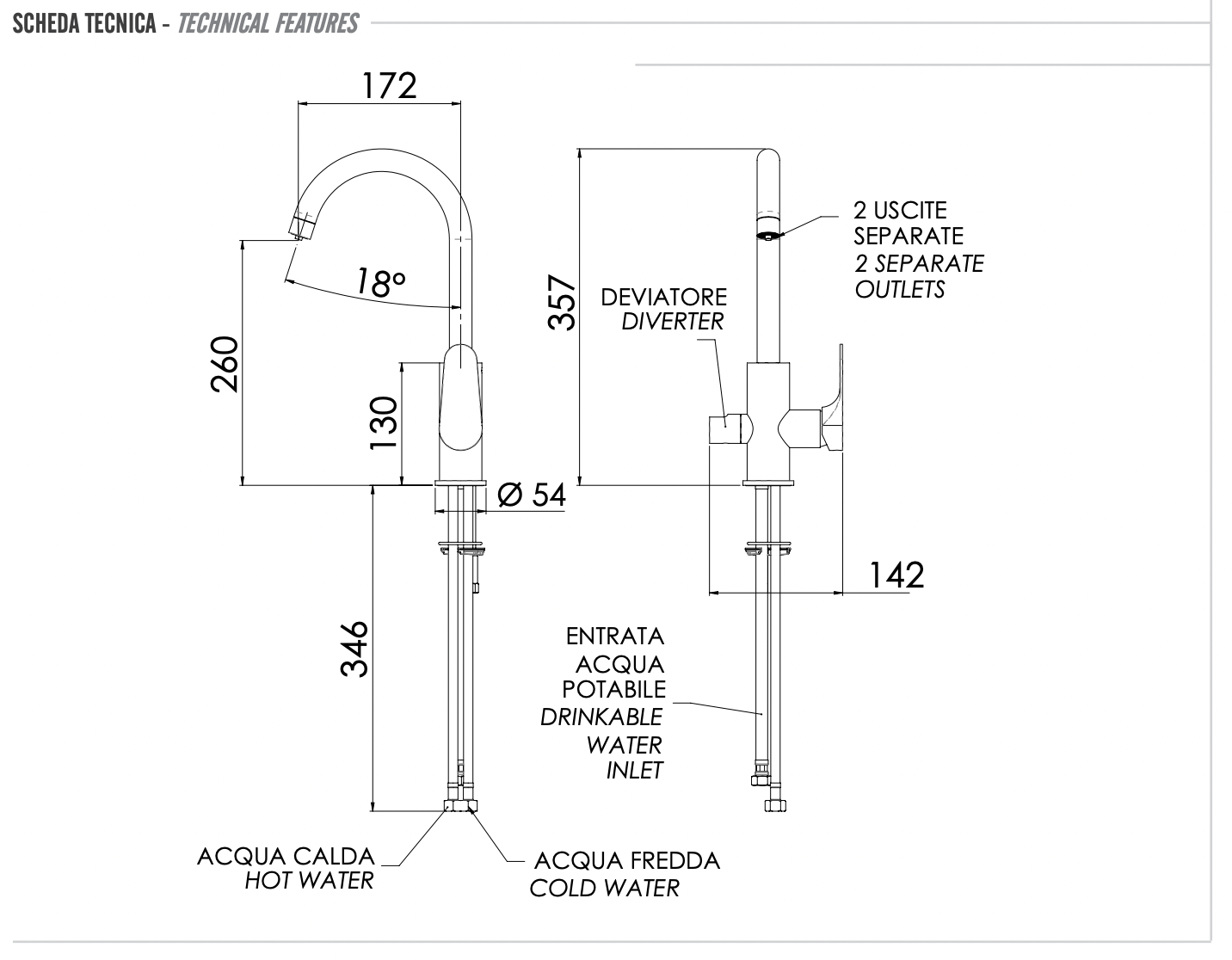 Remer Class Line Смеситель для кухни, с независимым каналом для питьевой воды, цвет: cromo L79DW и другие сантехнические изделия бренда характеризует надежность, высокое качество и продолжительный срок службы. Изделие в стилистике неоклассика впечатляюще будет смотреться в различных цветовых решениях помещения.