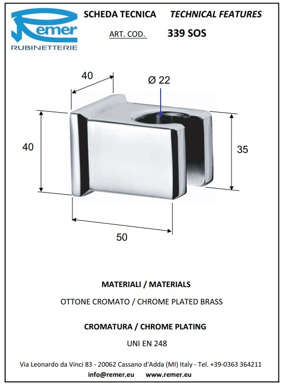 Закажите Remer Держатель ручного душа, цвет: nichel spazzolato 339SOSNP от производителя Remer, коллекция Remer в салоне европейской сантехники Дизайн Сантехники с быстрой доставкой по Москве. Представлены подробные характеристики и фотографии, которые позволят сделать правильный выбор и заказать товар.