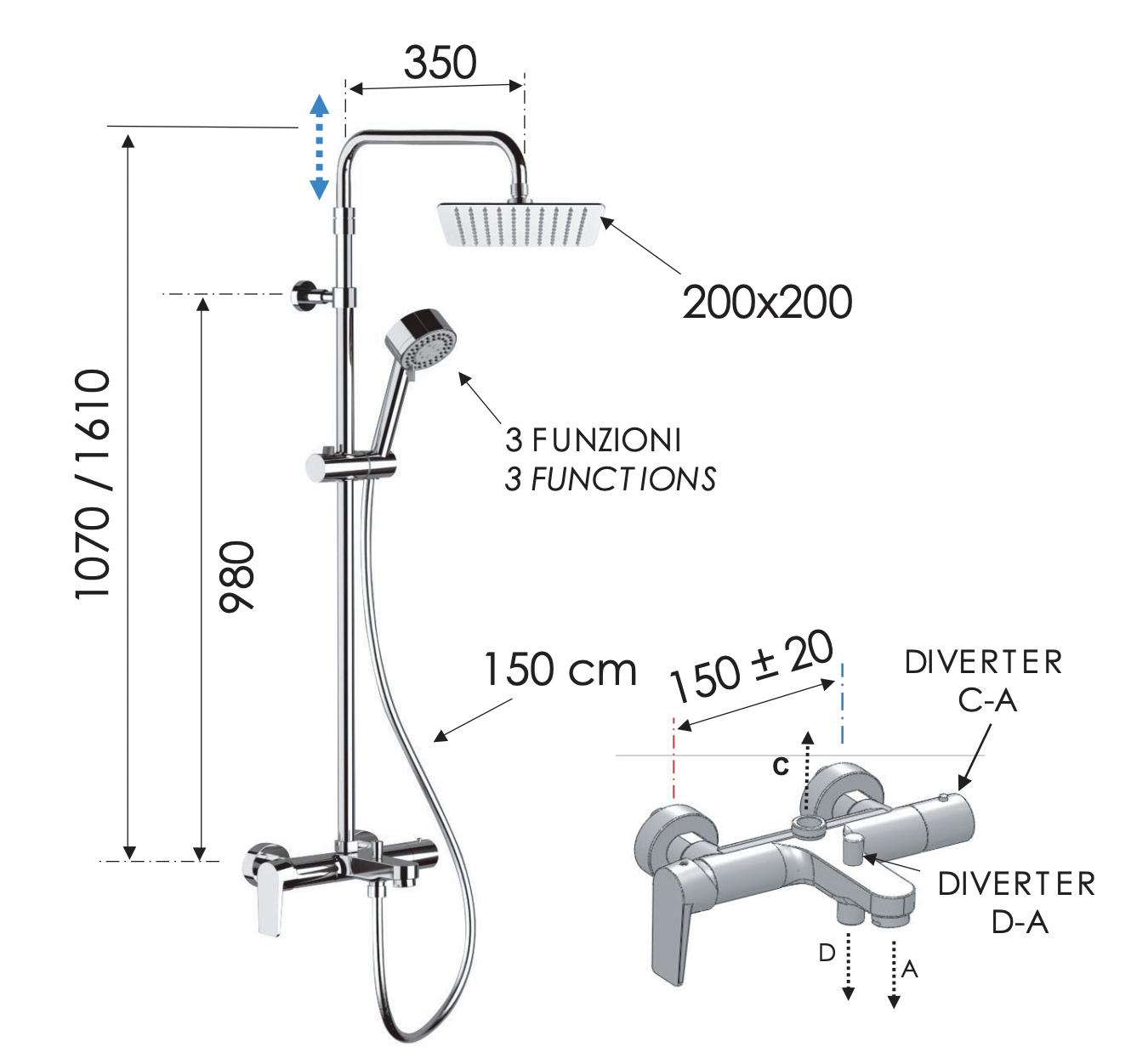 Remer Dream Душевая стойка: смеситель, верхний душ 25 см, лейка, штанга 161 см, шланг, цвет: cromo D34AUFD20 и другие сантехнические изделия бренда характеризует надежность, высокое качество и продолжительный срок службы. Изделие в стилистике минимализм впечатляюще будет смотреться в различных цветовых решениях помещения.