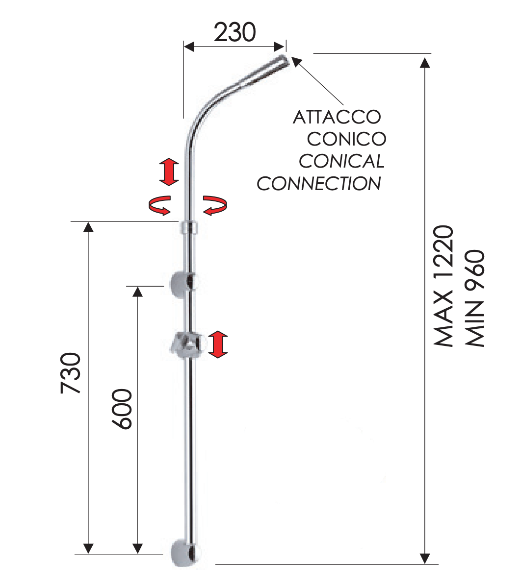 Remer Душевая штанга 122 см с держателями для ручного и верхнего душей, цвет: cromo 318C и другие сантехнические изделия бренда характеризует надежность, высокое качество и продолжительный срок службы. Изделие в стилистике минимализм впечатляюще будет смотреться в различных цветовых решениях помещения.