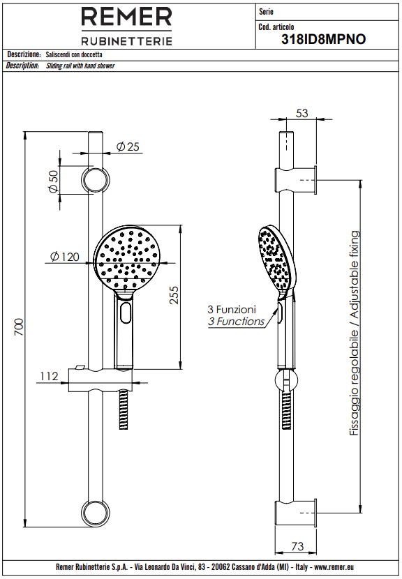Закажите Remer Душевой гарнитур: ручной душ 3 вида струи, штанга 70 см, шланг 150 см, цвет: nero opaco 317ID8MPNO от производителя Remer, коллекция Remer в салоне европейской сантехники Дизайн Сантехники с быстрой доставкой по Москве. Представлены подробные характеристики и фотографии, которые позволят сделать правильный выбор и заказать товар.