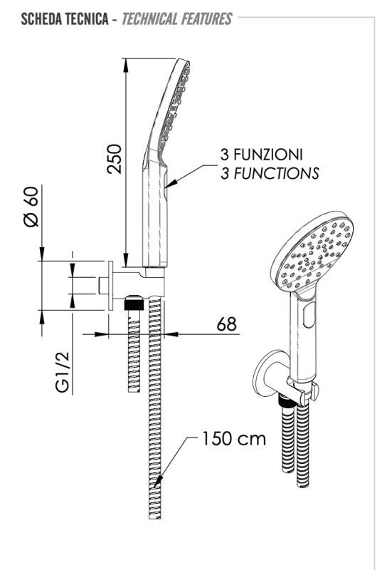 Remer Душевой гарнитур: лейка 3 режима, выпуск с держателем, шланг 150 см, цвет: cromo 337M318MP и другие сантехнические изделия бренда характеризует надежность, высокое качество и продолжительный срок службы. Изделие в стилистике неоклассика впечатляюще будет смотреться в различных цветовых решениях помещения.