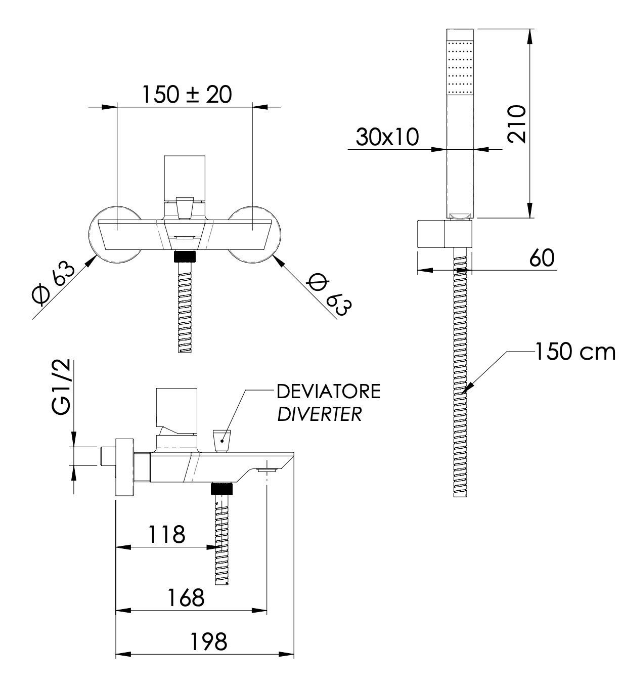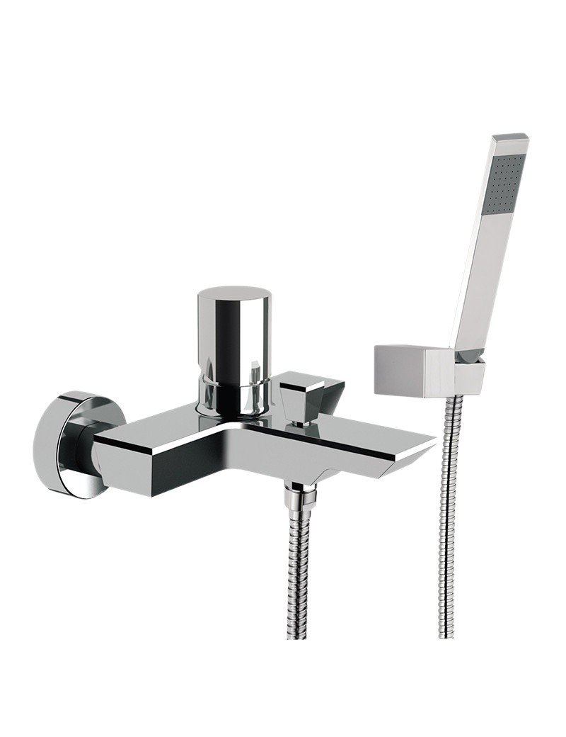Remer Edge Смеситель для ванны с душем, излив 16,8 см, лейка, держатель, шланг 150 см, цвет: cromo EG502 и другие сантехнические изделия бренда характеризует надежность, высокое качество и продолжительный срок службы. Изделие в стилистике арт-деко впечатляюще будет смотреться в различных цветовых решениях помещения.