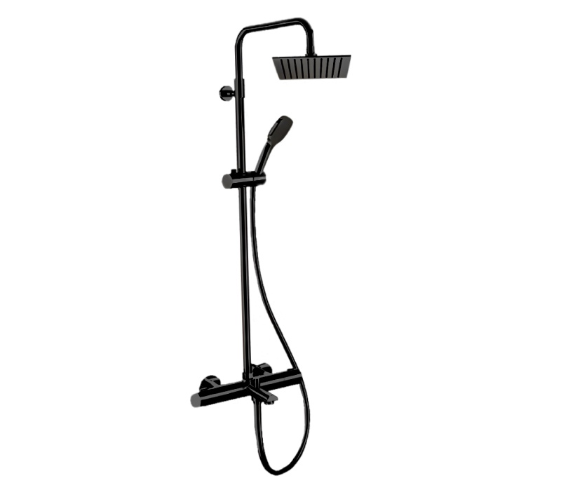 Remer Elegance Душевая стойка: термостат, верхний душ 25 см, лейка, штанга 161 см, цвет: nero opaco EQ34A8CPUFS25NO и другие сантехнические изделия бренда характеризует надежность, высокое качество и продолжительный срок службы. Изделие в стилистике минимализм впечатляюще будет смотреться в различных цветовых решениях помещения.