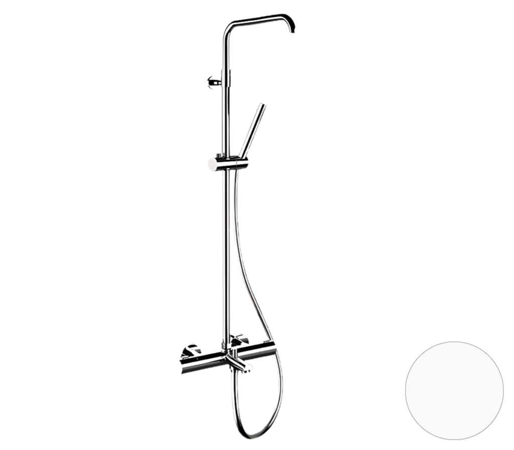 Remer Elegance Душевая стойка: термостат, излив 19,1 см, лейка 1 режим, шланг, цвет: bianco opaco EQ34A7MMSSOFBO и другие сантехнические изделия бренда характеризует надежность, высокое качество и продолжительный срок службы. Изделие в стилистике минимализм впечатляюще будет смотреться в различных цветовых решениях помещения.
