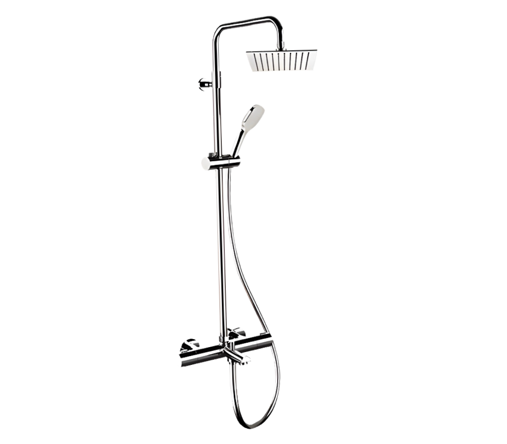 Remer Elegance Душевая стойка: термостат, верхний душ 25 см, лейка, штанга 161 см, цвет: cromo EQ34A8CPUFS25G и другие сантехнические изделия бренда характеризует надежность, высокое качество и продолжительный срок службы. Изделие в стилистике минимализм впечатляюще будет смотреться в различных цветовых решениях помещения.