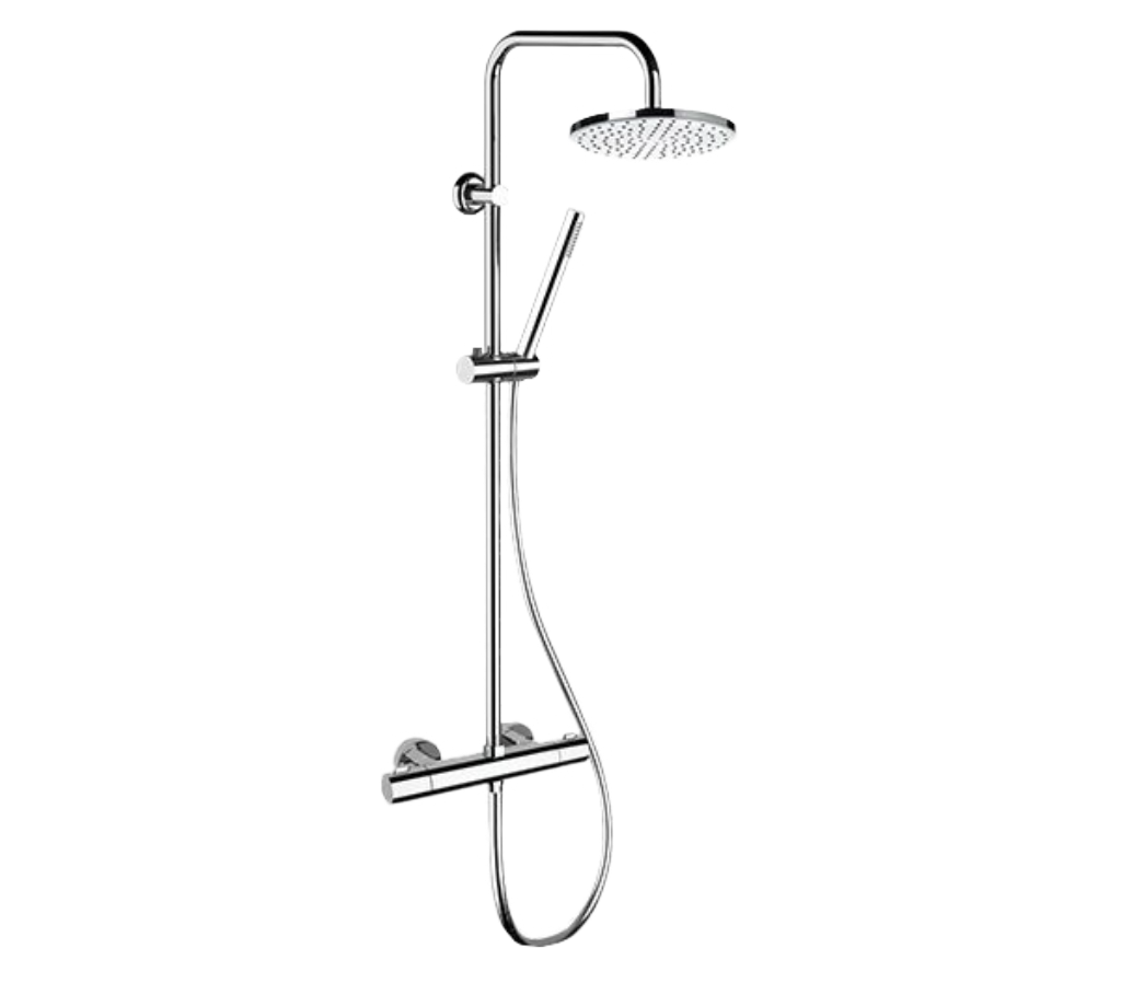 Remer Elegance Душевая стойка: термостат, верхний душ 20 см, лейка, штанга 100 см, цвет: cromo EQ32X7MMM20 и другие сантехнические изделия бренда характеризует надежность, высокое качество и продолжительный срок службы. Изделие в стилистике минимализм впечатляюще будет смотреться в различных цветовых решениях помещения.
