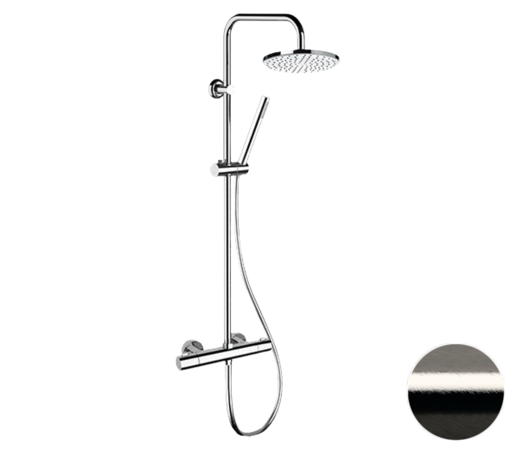 Remer Elegance Душевая стойка: термостат, верхний душ, штанга 100 см, цвет: nichel spazzolato opaco EQ32X7MMM20NP и другие сантехнические изделия бренда характеризует надежность, высокое качество и продолжительный срок службы. Изделие в стилистике минимализм впечатляюще будет смотреться в различных цветовых решениях помещения.