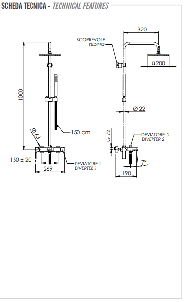 Remer Energy Душевая стойка: смеситель, верхний душ 20 см, лейка, штанга 100 см, цвет: nero opaco EY34X7SS9SSNO и другие сантехнические изделия бренда характеризует надежность, высокое качество и продолжительный срок службы. Изделие в стилистике минимализм впечатляюще будет смотреться в различных цветовых решениях помещения.