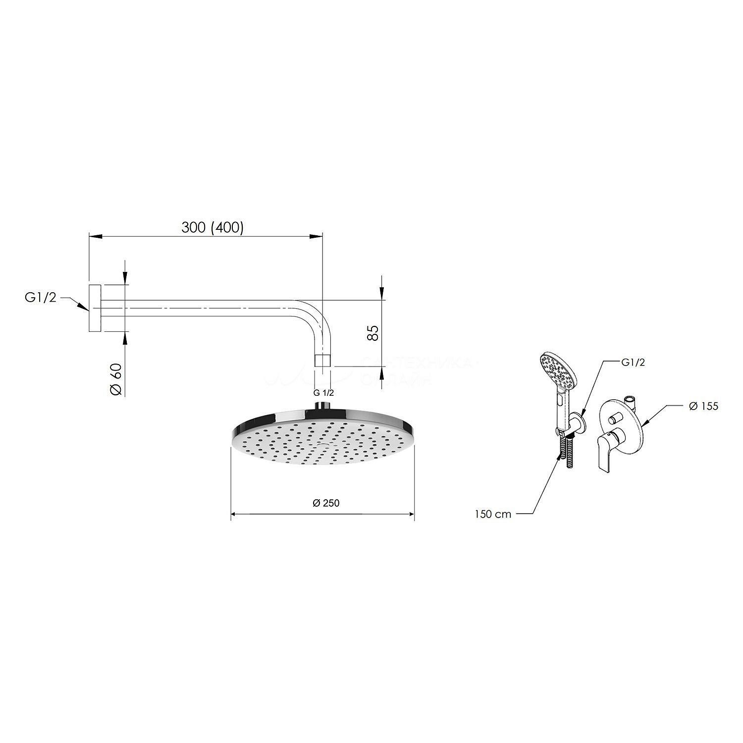 Remer Energy Душевой комплект: смеситель, верхний душ 25 см, лейка 3 режима, шланг, цвет: cromo EY09S02MD25MVB и другие сантехнические изделия бренда характеризует надежность, высокое качество и продолжительный срок службы. Изделие в стилистике минимализм впечатляюще будет смотреться в различных цветовых решениях помещения.