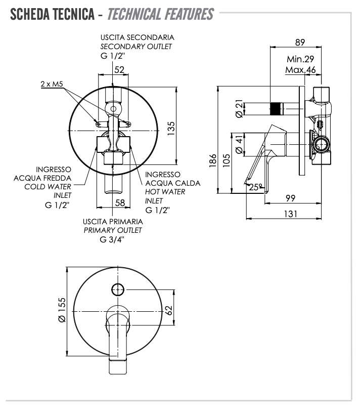 Remer Energy Смеситель для ванны встраиваемый на 2 потребителя, с встраиваемой частью, цвет: cromo EY09H и другие сантехнические изделия бренда характеризует надежность, высокое качество и продолжительный срок службы. Изделие в стилистике неоклассика впечатляюще будет смотреться в различных цветовых решениях помещения.