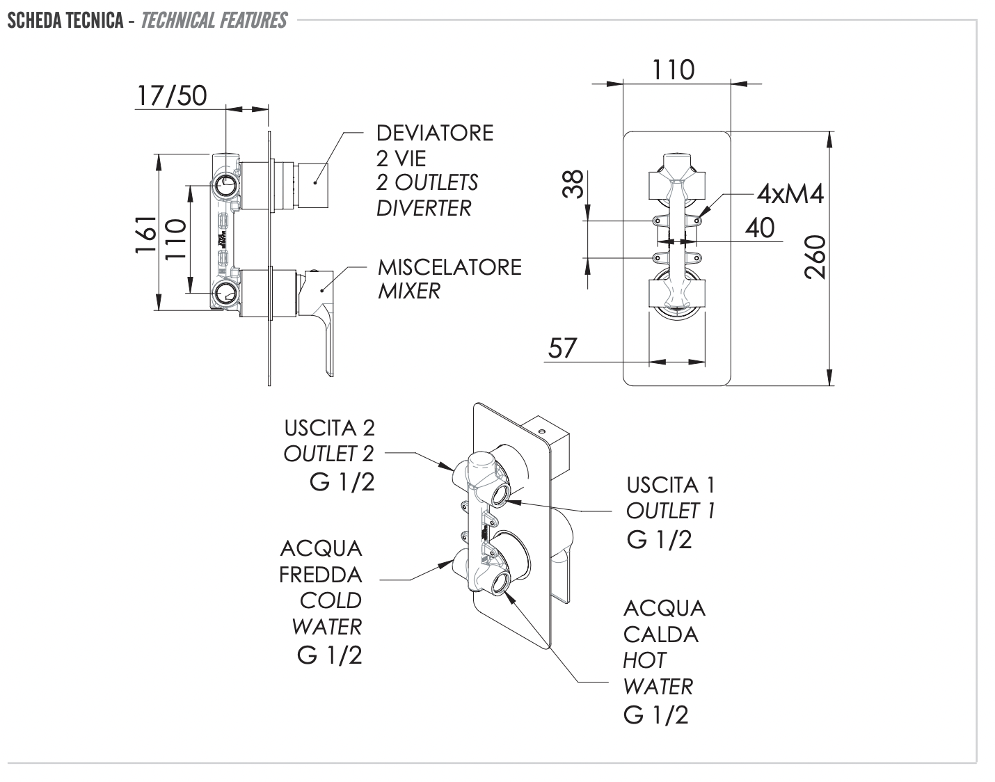 Remer Energy Смеситель для ванны встраиваемый на 2 потребителя, с встраиваемой частью, цвет: cromo EY92 и другие сантехнические изделия бренда характеризует надежность, высокое качество и продолжительный срок службы. Изделие в стилистике неоклассика впечатляюще будет смотреться в различных цветовых решениях помещения.
