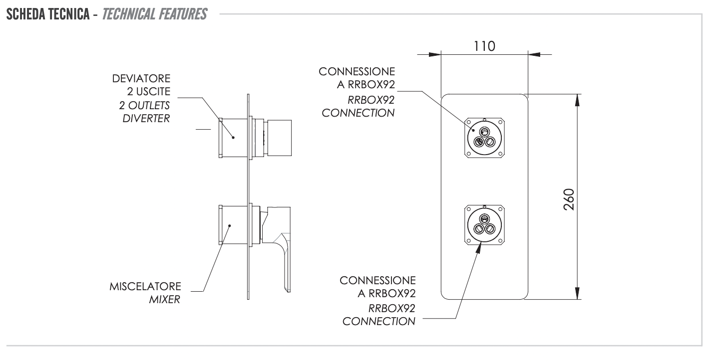Remer Energy Смеситель для ванны встраиваемый на 2 потребителя, внешняя часть, цвет: cromo EY92KB и другие сантехнические изделия бренда характеризует надежность, высокое качество и продолжительный срок службы. Изделие в стилистике неоклассика впечатляюще будет смотреться в различных цветовых решениях помещения.
