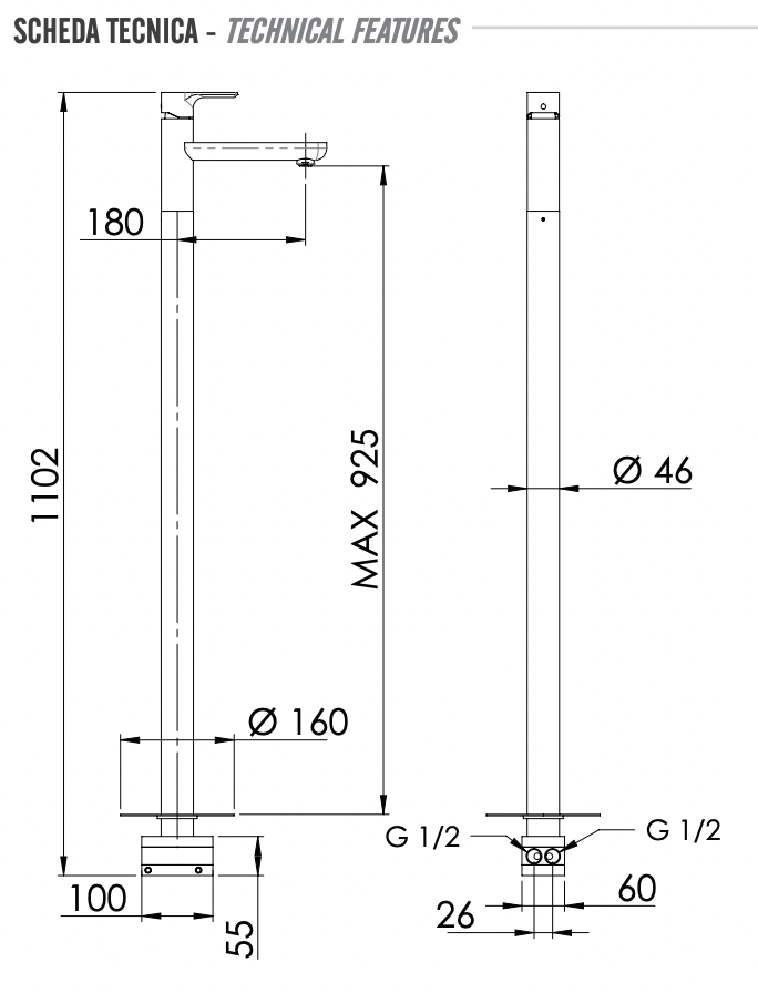 Remer Energy Смеситель для раковины напольный, д/к, излив 18 см, цвет: cromo EY18 и другие сантехнические изделия бренда характеризует надежность, высокое качество и продолжительный срок службы. Изделие в стилистике лофт впечатляюще будет смотреться в различных цветовых решениях помещения.