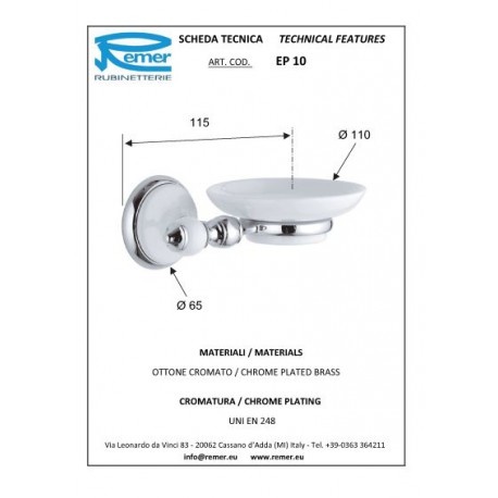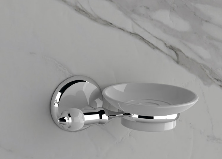 Remer Epoca Мыльница с керамической чашей, подвесная, цвет: cromo EP10CR и другие сантехнические изделия бренда характеризует надежность, высокое качество и продолжительный срок службы. Изделие в стилистике английская классика впечатляюще будет смотреться в различных цветовых решениях помещения.