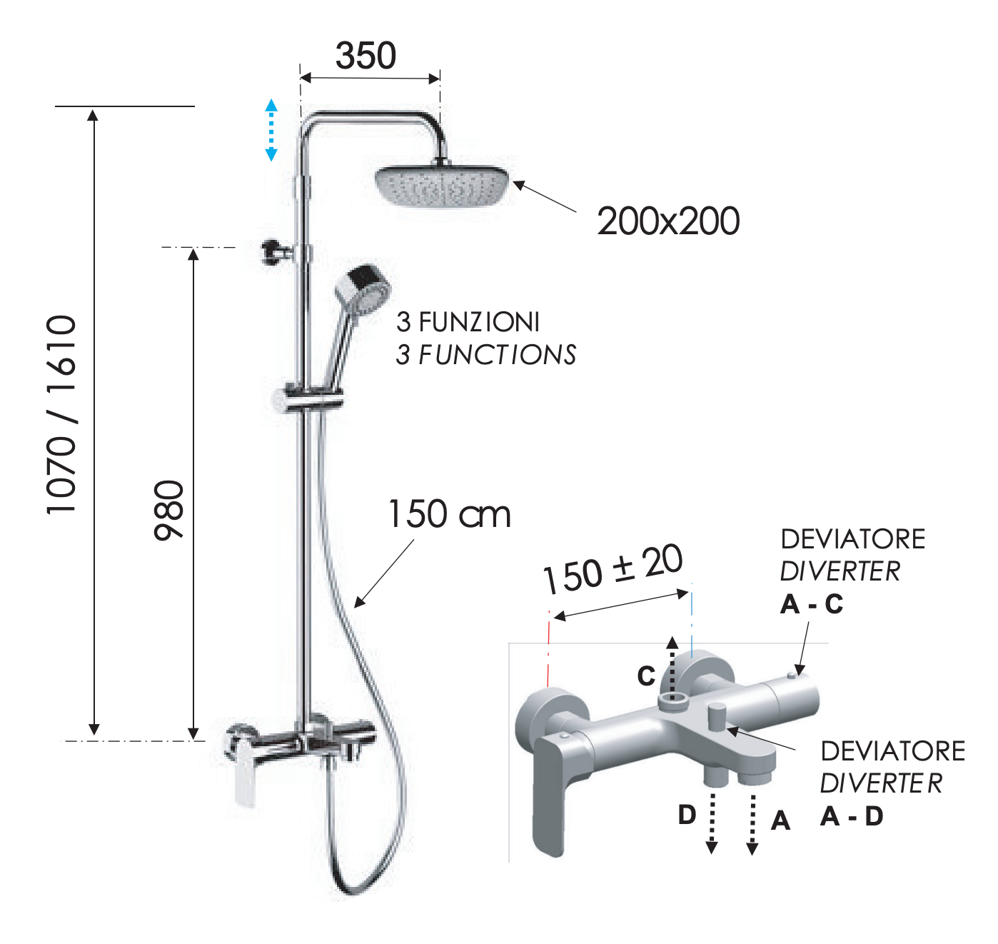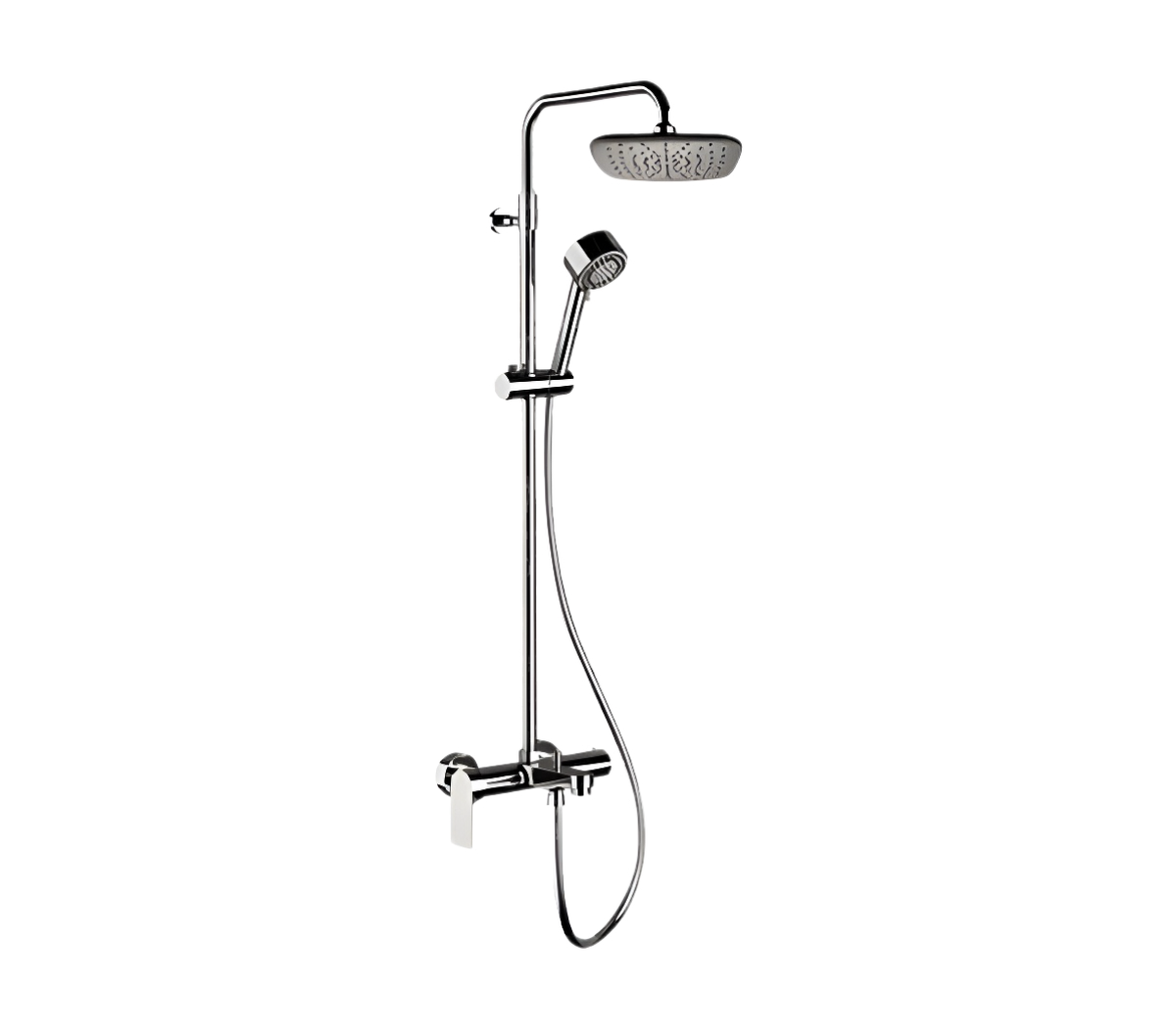 Remer Infinity Душевая стойка: смеситель, верхний душ 20 см, лейка, штанга 161 см, цвет: cromo I34AAD20 и другие сантехнические изделия бренда характеризует надежность, высокое качество и продолжительный срок службы. Изделие в стилистике минимализм впечатляюще будет смотреться в различных цветовых решениях помещения.