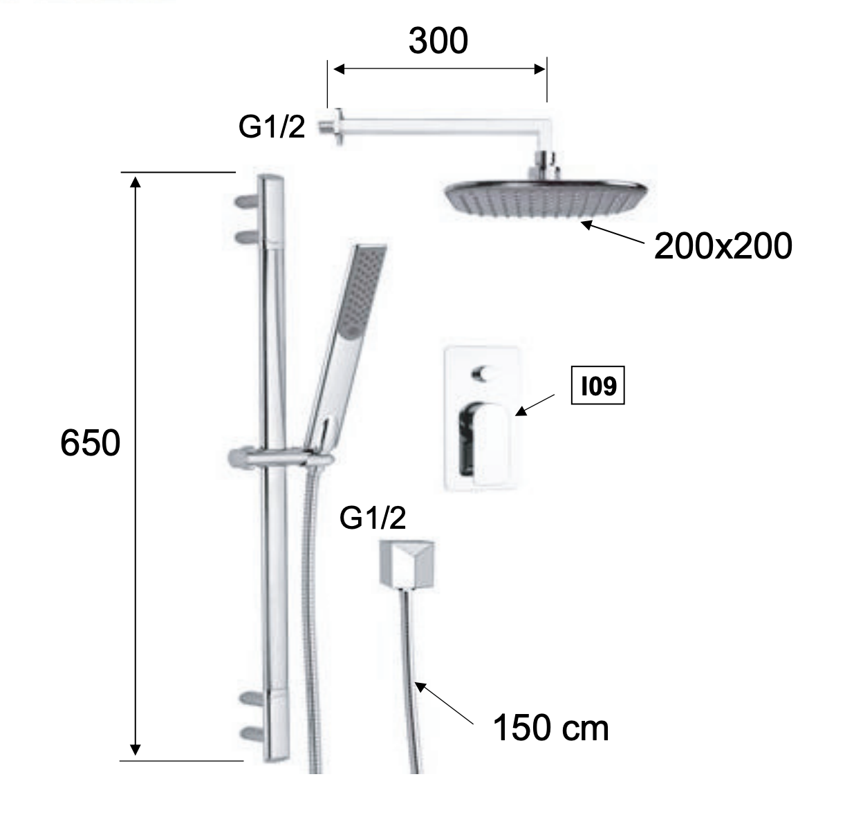 Remer Infinity Душевой комплект: смеситель, верхний душ 20 см, лейка, штанга 65 см, цвет: cromo i09S01 и другие сантехнические изделия бренда характеризует надежность, высокое качество и продолжительный срок службы. Изделие в стилистике минимализм впечатляюще будет смотреться в различных цветовых решениях помещения.