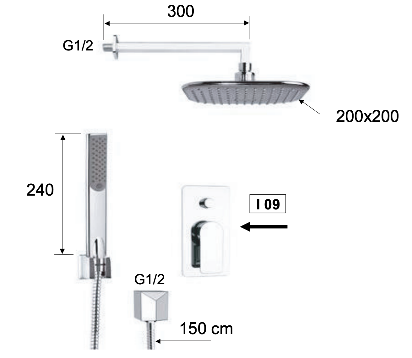 Remer Infinity Душевой комплект: смеситель, верхний душ 20 см, лейка, держатель, шланг, цвет: cromo i09S02 и другие сантехнические изделия бренда характеризует надежность, высокое качество и продолжительный срок службы. Изделие в стилистике минимализм впечатляюще будет смотреться в различных цветовых решениях помещения.
