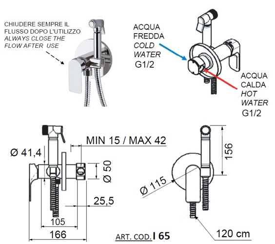 Remer Infinity Гигиенический душ со смесителем, шланг, с встраиваемой частью, цвет: oro lucido I65DO и другие сантехнические изделия бренда характеризует надежность, высокое качество и продолжительный срок службы. Изделие в стилистике лофт впечатляюще будет смотреться в различных цветовых решениях помещения.