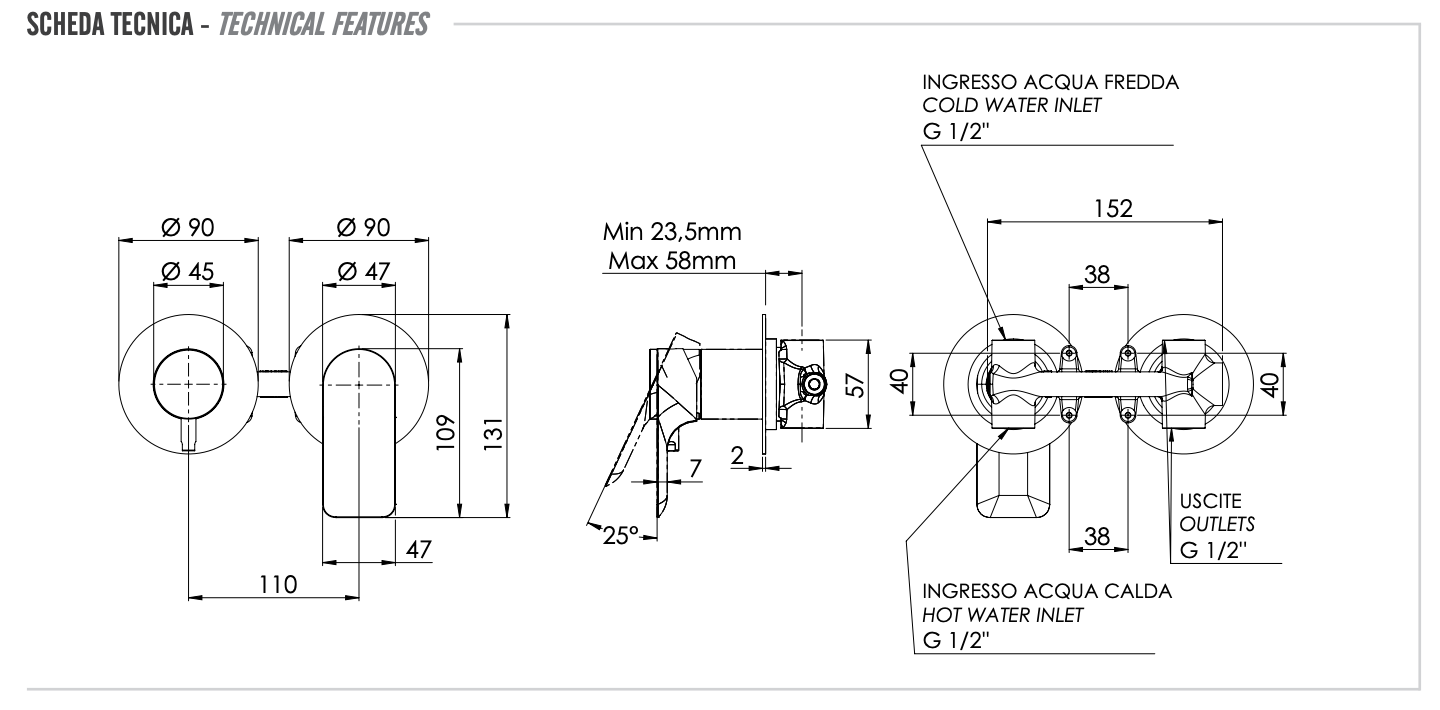 Remer Infinity Смеситель для ванны встраиваемый, 2 потребителя, с скрытой частью, цвет: cromo I92ZP и другие сантехнические изделия бренда характеризует надежность, высокое качество и продолжительный срок службы. Изделие в стилистике неоклассика впечатляюще будет смотреться в различных цветовых решениях помещения.