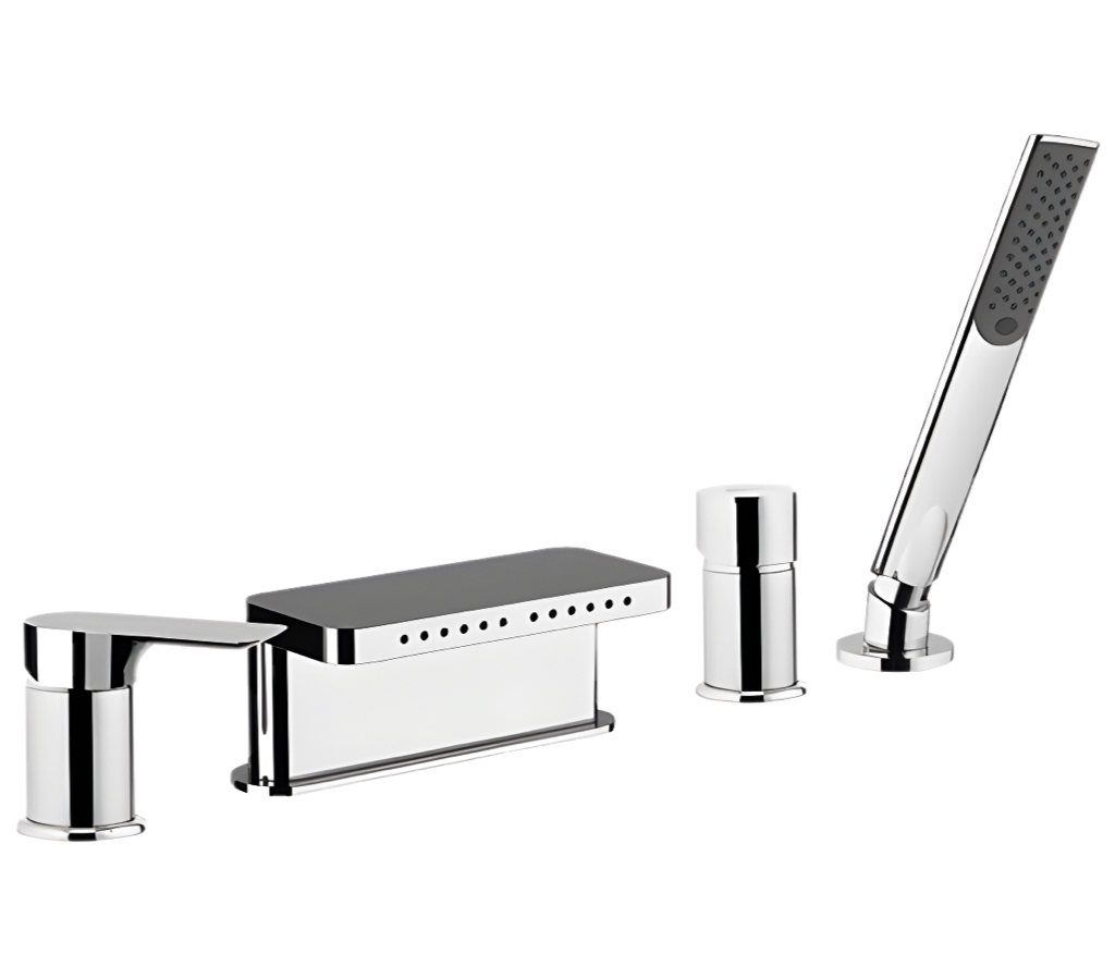 Remer Infinity Смеситель на борт ванны, каскадный излив многоструйный, лейка, шланг, цвет: cromo I06 и другие сантехнические изделия бренда характеризует надежность, высокое качество и продолжительный срок службы. Изделие в стилистике неоклассика впечатляюще будет смотреться в различных цветовых решениях помещения.