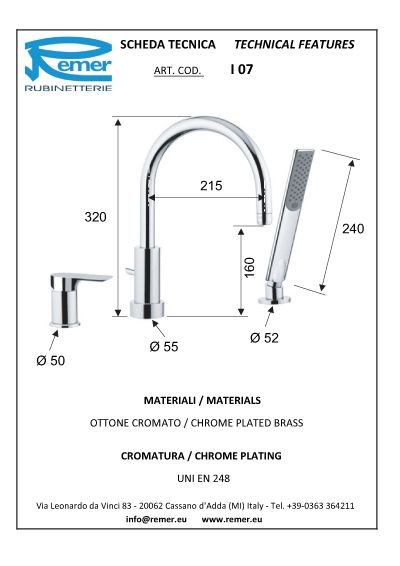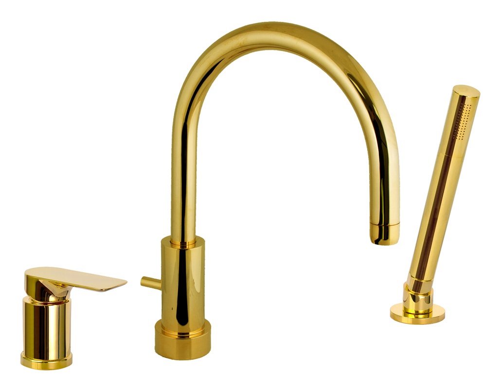 Remer Infinity Смеситель на борт ванны, излив 21,5 см, ручной душ, шланг 150 см, цвет: oro lucido I07DO и другие сантехнические изделия бренда характеризует надежность, высокое качество и продолжительный срок службы. Изделие в стилистике неоклассика впечатляюще будет смотреться в различных цветовых решениях помещения.