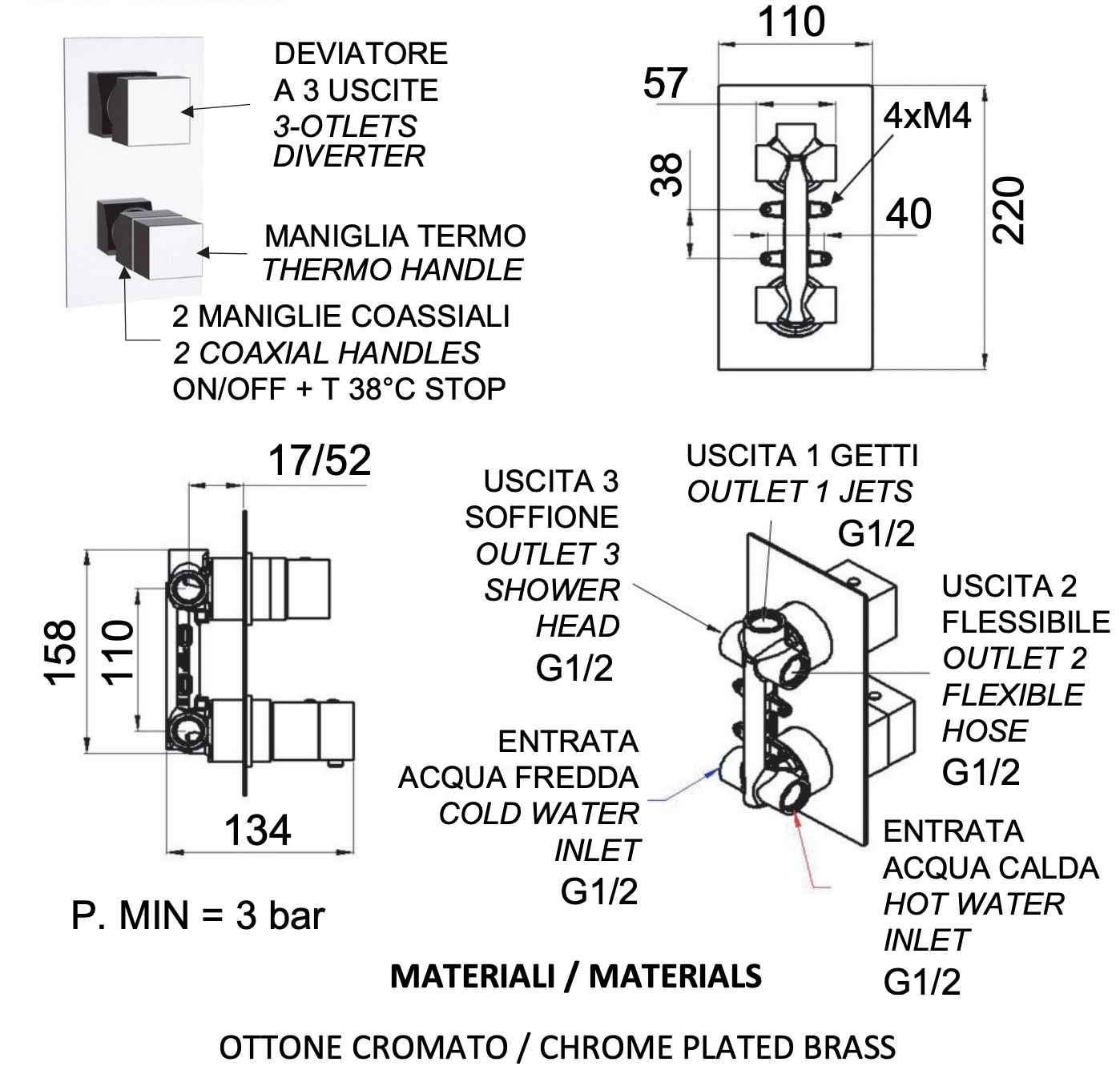 Remer Q-Elegance Термостат для ванны встраиваемый, 3 потребителя, с встраиваемой частью, цвет: cromo QT93 и другие сантехнические изделия бренда характеризует надежность, высокое качество и продолжительный срок службы. Изделие в стилистике арт-деко впечатляюще будет смотреться в различных цветовых решениях помещения.