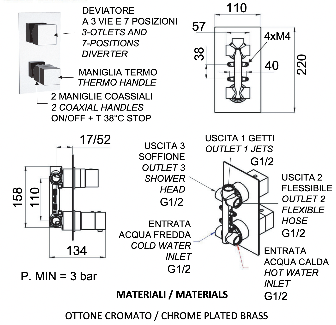 Закажите Remer Q-Elegance Термостат для ванны встраиваемый, 3 потребителя, с скрытой частью, цвет: cromo QT937 от производителя Remer, коллекция Q-Elegance в салоне европейской сантехники Дизайн Сантехники с быстрой доставкой по Москве. Представлены подробные характеристики и фотографии, которые позволят сделать правильный выбор и заказать товар.