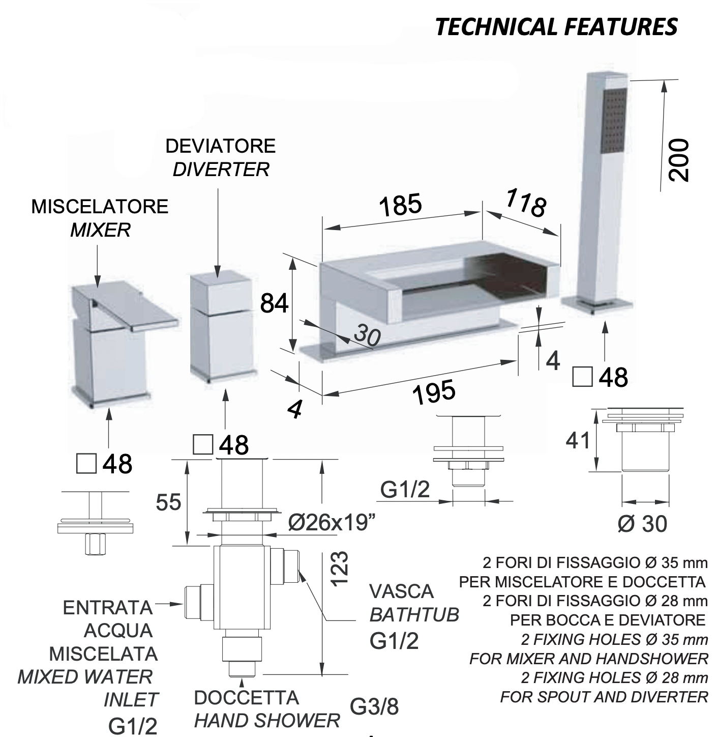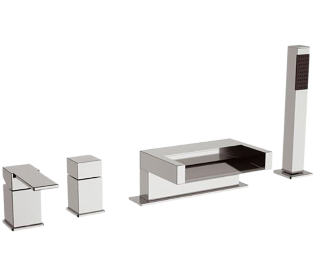 Remer Qubika Cascata Смеситель на борт ванны, каскадный излив, лейка 1 режим, шланг, цвет: cromo QC06 и другие сантехнические изделия бренда характеризует надежность, высокое качество и продолжительный срок службы. Изделие в стилистике арт-деко впечатляюще будет смотреться в различных цветовых решениях помещения.