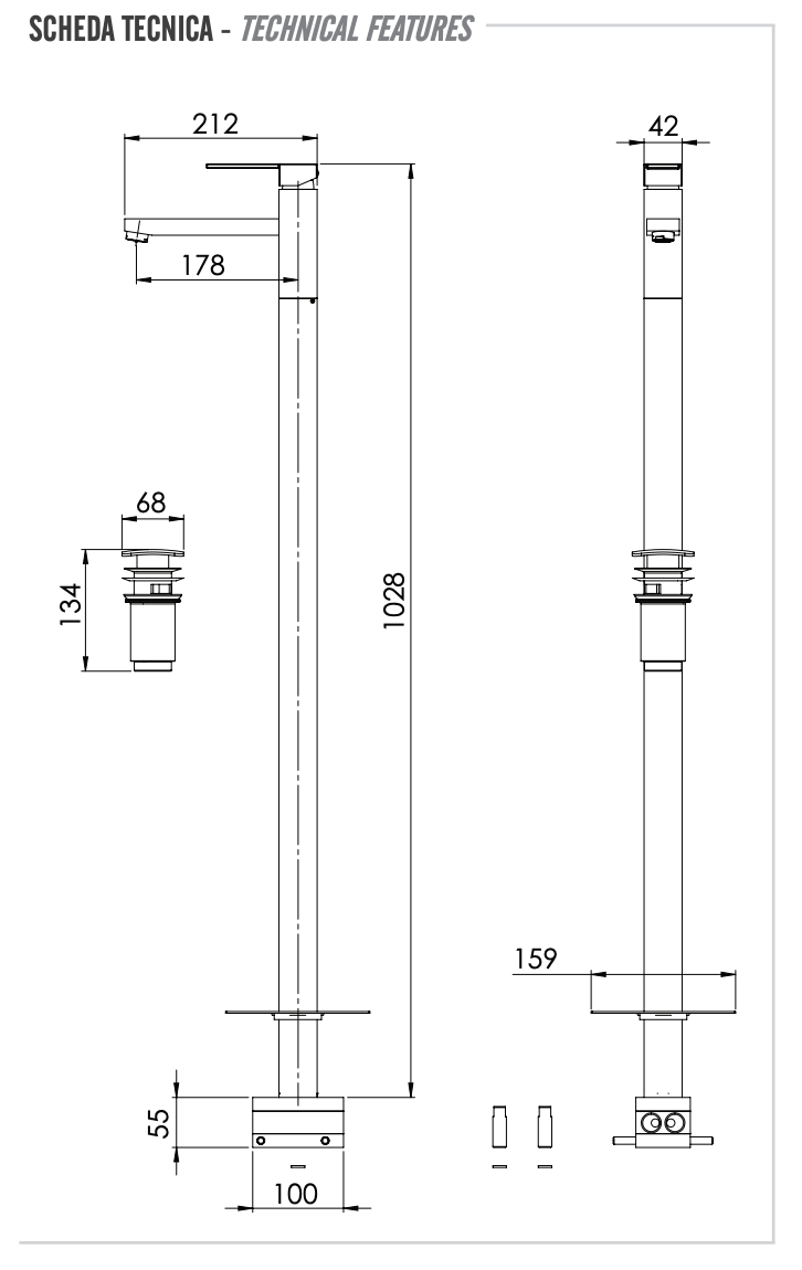 Remer Qubika Смеситель для раковины напольный, д/к, излив 17 см, цвет: cromo Q18 и другие сантехнические изделия бренда характеризует надежность, высокое качество и продолжительный срок службы. Изделие в стилистике арт-деко впечатляюще будет смотреться в различных цветовых решениях помещения.