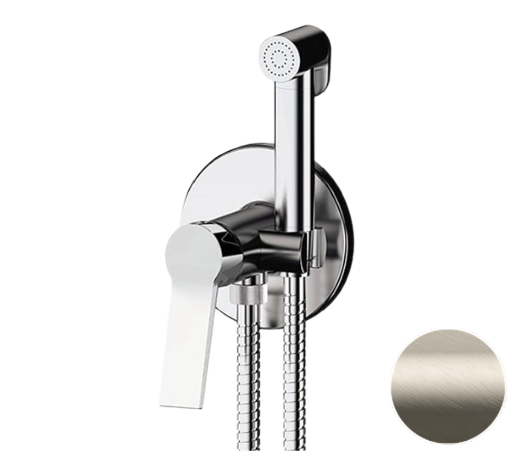 Remer Slash & Dot Гигиенический душ со смесителем, шланг, с встраиваемой частью, цвет: visual inox SL65WXV и другие сантехнические изделия бренда характеризует надежность, высокое качество и продолжительный срок службы. Изделие в стилистике лофт впечатляюще будет смотреться в различных цветовых решениях помещения.